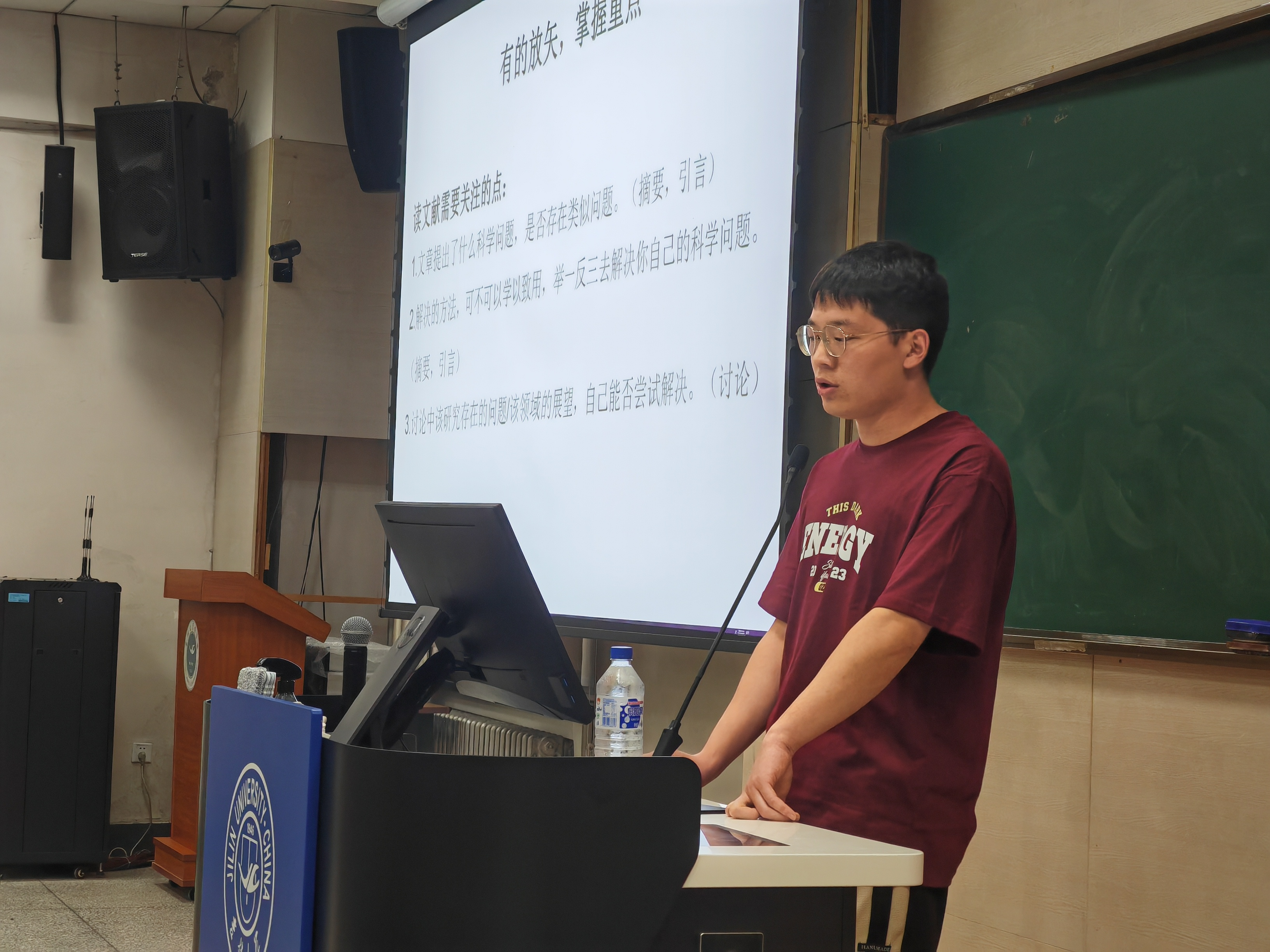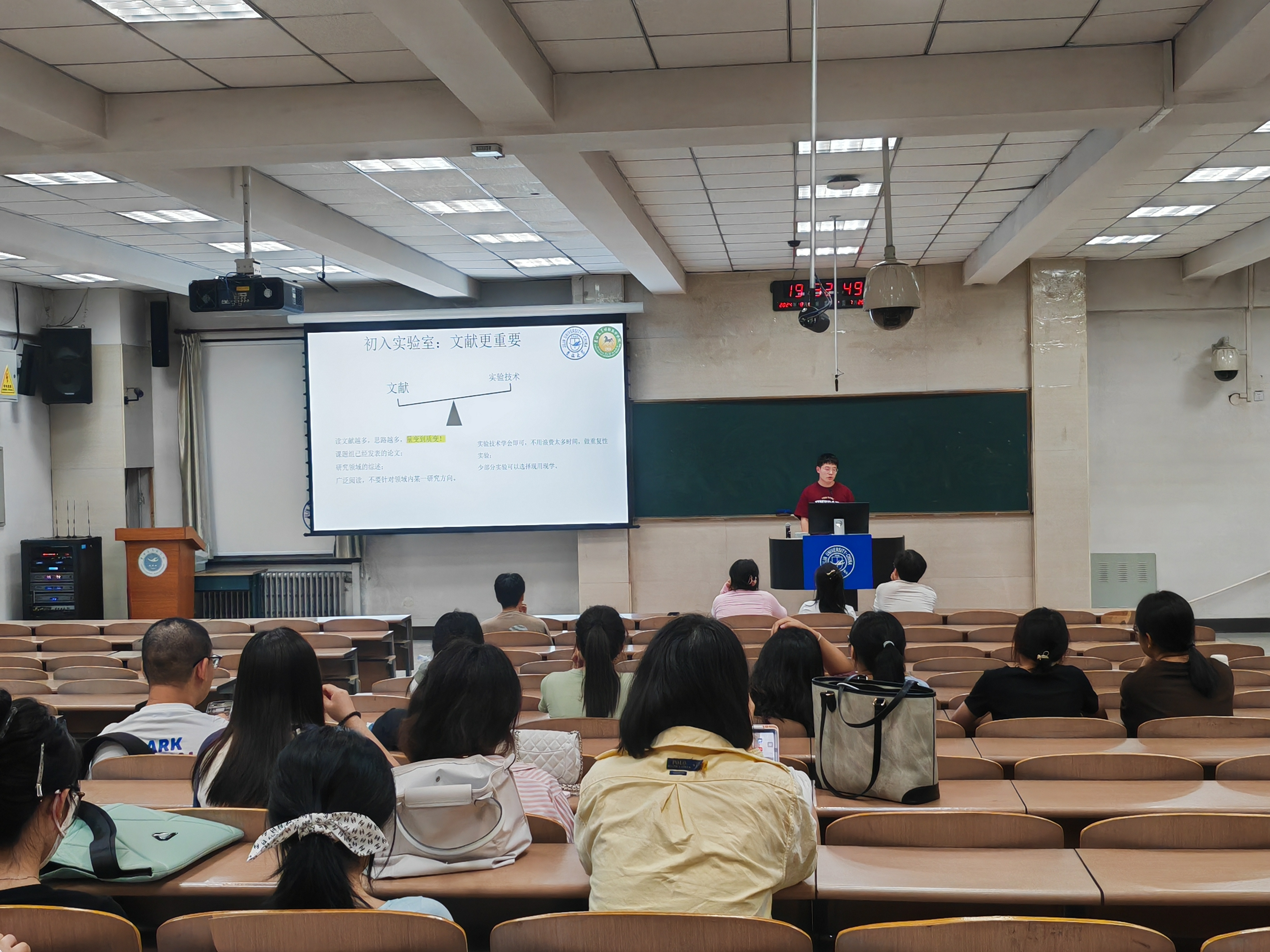 ,在科学研究领域拥有丰富的研究经历和优秀的学术成就。分享会上,他围绕“我认为的科研”这一话题进行了深入探讨,向同学们传达了科研工作中文献阅读远大于实验技术的思想,他强调了前沿文献阅读的重要性,并建议同学们每周安排固定时间浏览最新的研究进展,以保持对领域动态的敏锐性。