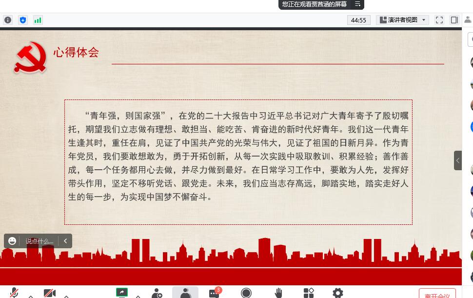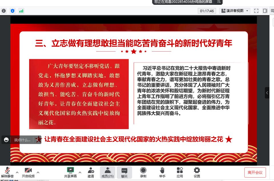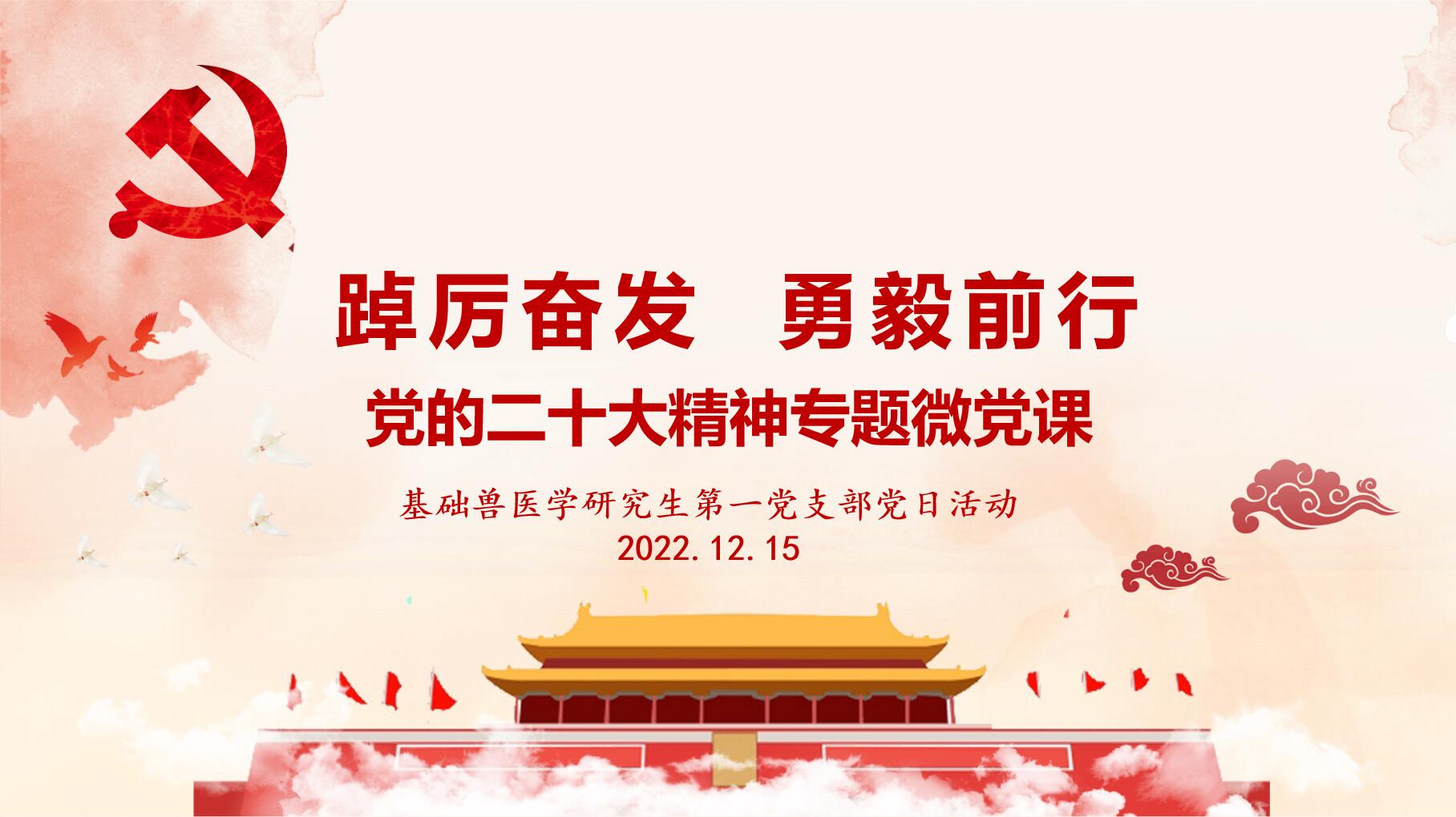 基础兽医学研究生学生第一党支部通过线上方式于2022年12月15日组织了党的二十大精神学习微党课。