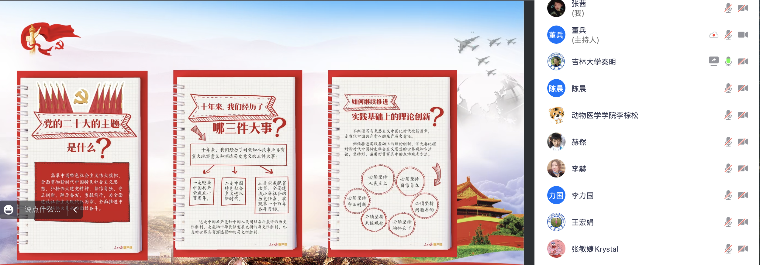 行政综合机关教工党支部于2022年12月8日线上召开支部大会,邀请学院党委副书记、纪委书记秦明同志为大家讲授党的二十大精神专题党课,会议由支部书记董兵同志主持。