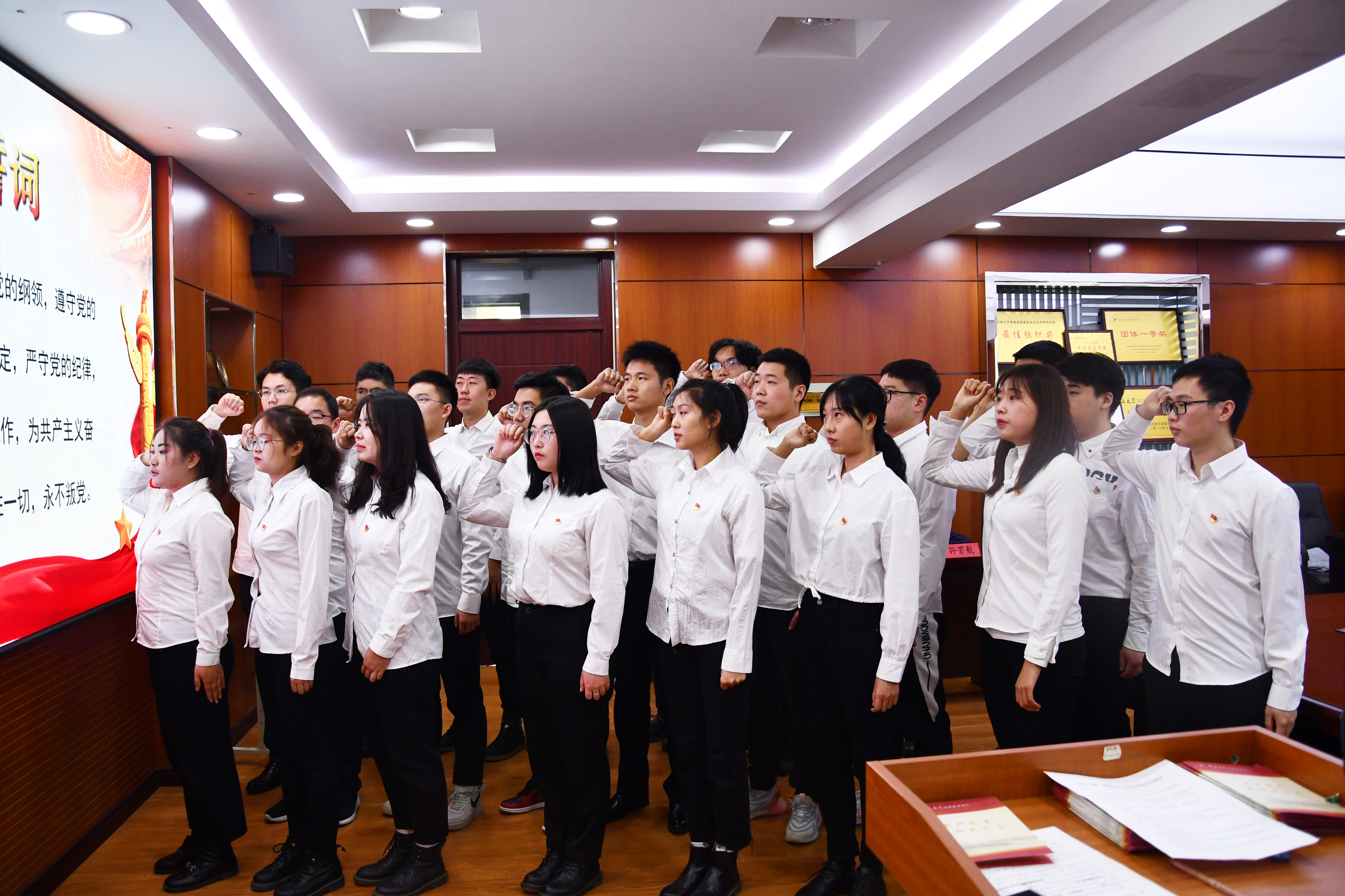 党委在兽医楼三楼会议室召开了庄严而隆重的新党员入党宣誓活动。学院党委副书记饶家辉、副书记栾志伟参加了此次活动。
