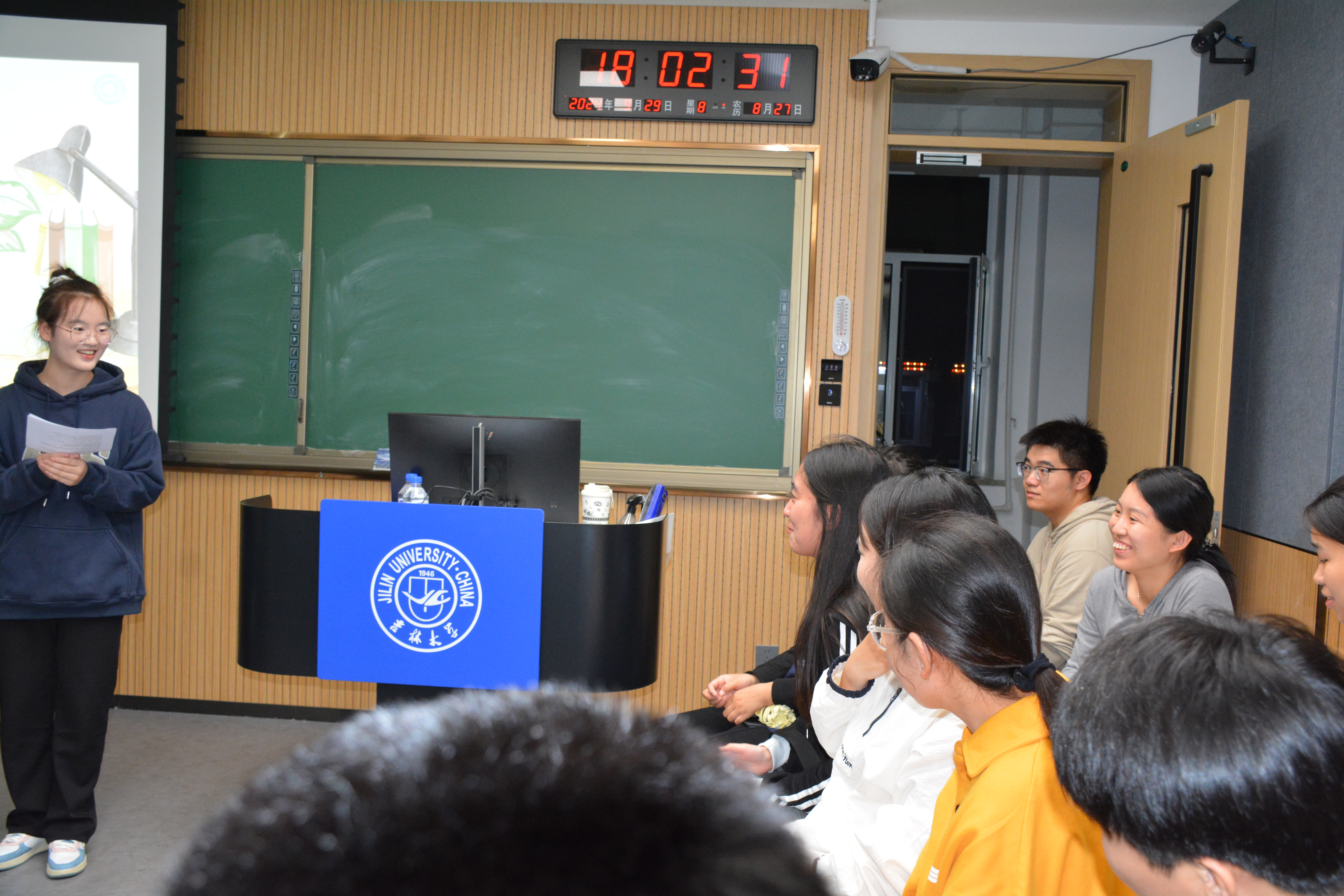 活动伊始,主持人组织开展热身环节,带领大家进行了“书趣竞猜”。参与者排成一列或围成一圈,由主持人描述书籍中的特定场景、人物特征或故事情节,但不直接透露书名,参与者根据描述内容猜测书名,并举手示意回答。主持人邀请首位举手的参与者回答,若回答正确,则给予积分奖励;若回答错误,则继续邀请其他参与者回答,直至有人答对或无人再答。每条描述内容对应一个正确答案,答对后继续下一条描述内容的猜测。游戏开始同学们展现出各自丰厚读书的知识底蕴。随着游戏的进行,难度逐渐增加,现场角逐激烈,气氛热烈,最终徐上雅同学获得了游戏的胜利。