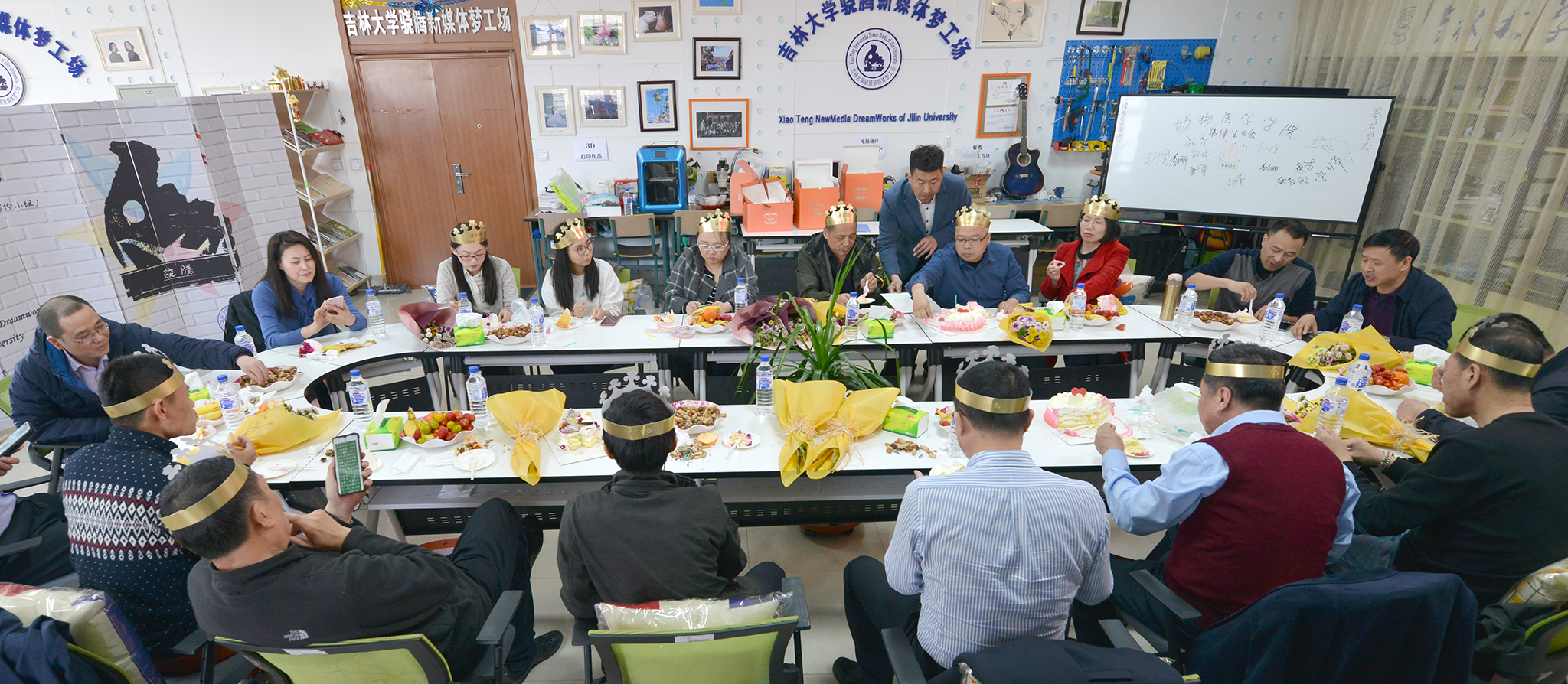 工会组织第二季度过生日的全体教职工在实验教学中心五楼“骁腾新媒体梦工場”举办了首届集体生日会,自此,拉开了每季度为教职工过集体生日的序幕。色情漫画