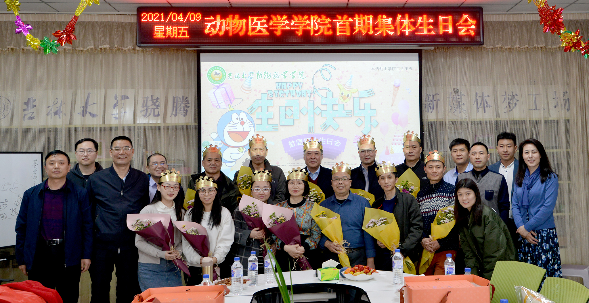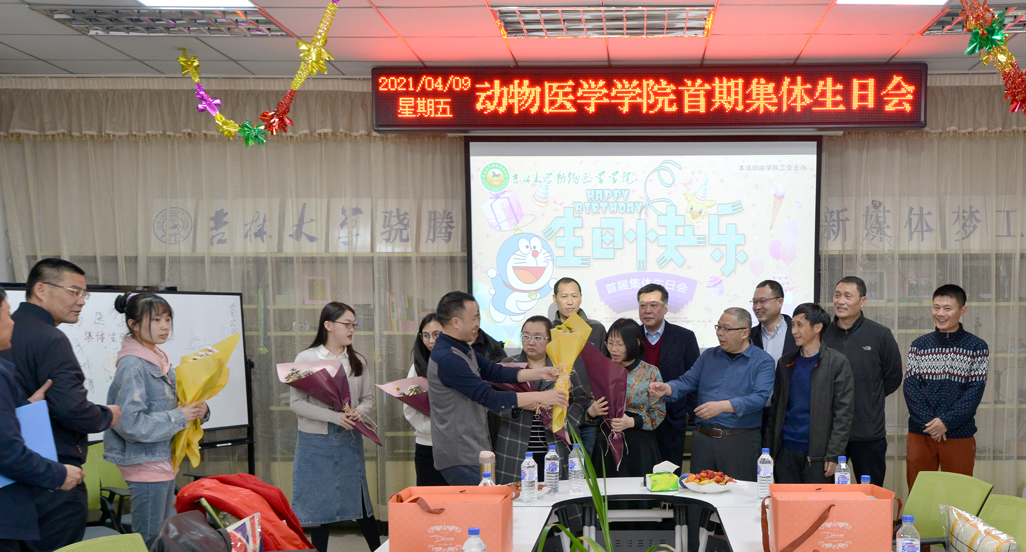 院长刘明远教授、党委副书记饶家辉同志及全体班子成员参加了生日会。活动由学院行政副院长(工会主席)马春峰同志主持。
