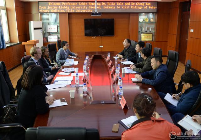 常务副院长张西臣教授代表学院对吉森大学代表团此次来访表示热烈的欢迎,同时向代表团一行简要介绍了学院的发展历程和人才队伍建设等情况。罗宾.亨利教授介绍了吉森大学兽医学院在办学理念、对外交流等方面的情况。双方表示将共同努力,进一步加强沟通与合作。