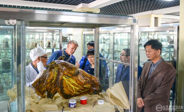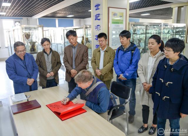 座谈结束后,在动物医院院长张乃生教授等陪同下,Richard French 博士等一行人先后参观了动物医院、动物机能学教室诊断实验室,显微互动实验室、标本馆等,并签字留念。