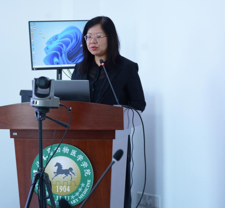 的历史与发展。她指出,学院致力于培养高层次的兽医学人才,为国家的动物医学事业贡献力量。学院教授冯新、胡盼、杜希良、张巧灵,分别介绍了预防兽医学、兽医公共卫生学、临床兽医学、基础兽医学的研究方向、师资力量、研究生毕业去向以及各研究室的团队成员和科研成果等情况,同时对报考要求、学院文化建设、生活条件等方面内容进行了详细说明。宣讲过程中,老师与同学们充分互动,细致耐心回答了同学们关心的培养过程及就业前景等方面的相关问题。
