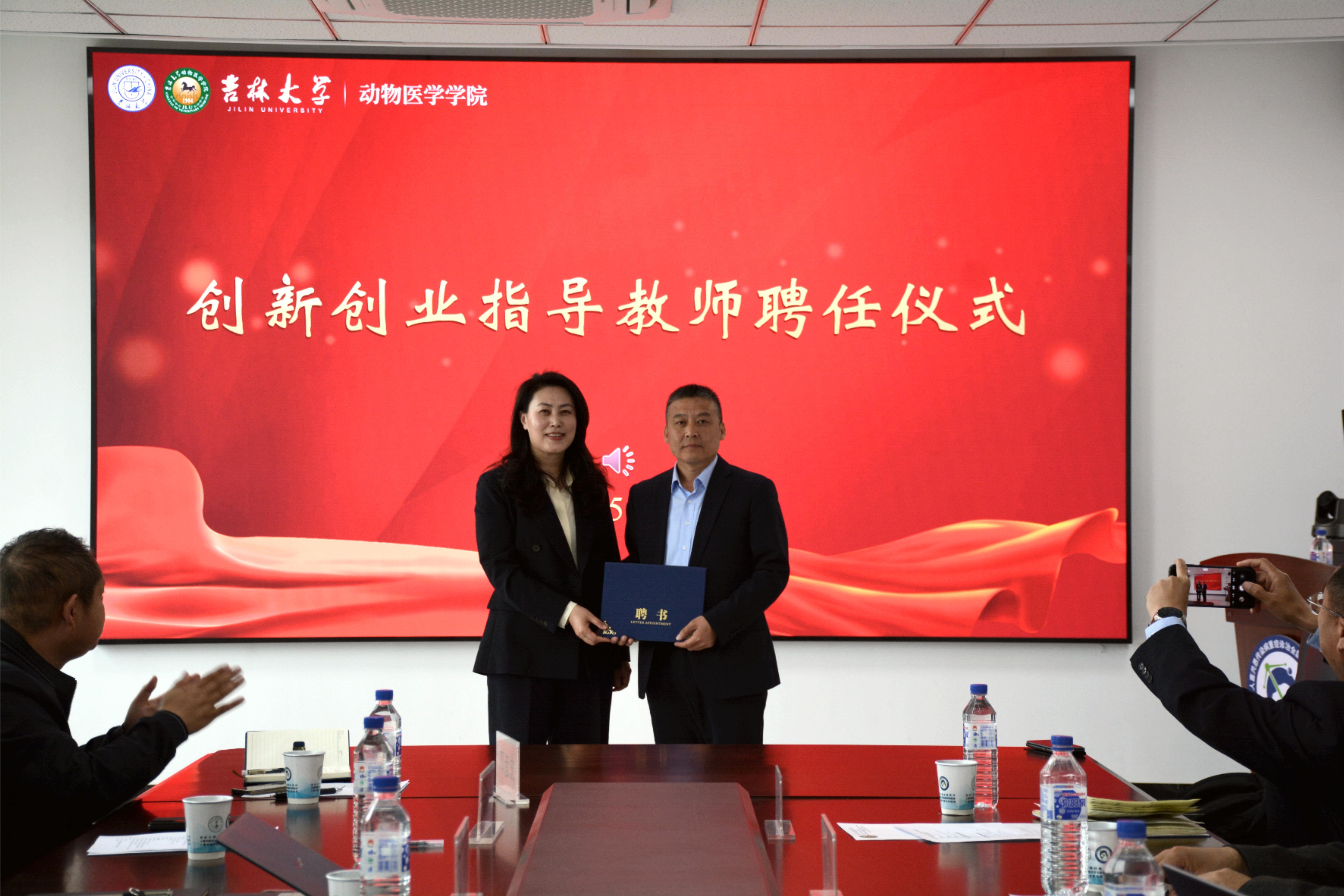 随后,李建华院长对参加本次简要介绍参会人员并致欢迎词,代表学院颁发创新创业指导教师聘书并合影。座谈会上,李建华院长指出,深化“四链融合”是新时代高等教育与产业协同发展的必然要求。学院依托教育链基础优势,近年来在兽医学、人与动物共有医学等领域构建了特色学科体系,并通过“产学研用”一体化模式,推动人才链与产业链精准对接。与中升挑战生物科技的合作,将有效贯通从基础研究到产业应用的创新链,实现资源互补、价值共创。刘海余总经理高度认同“四链融合”理念,并强调企业作为产业链主体,亟需高校在技术研发与人才供给上的支持。“公司当前在动物疫苗、新型兽药等领域的产能升级,离不开创新链的源头活水和人才链的持续赋能。此次合作将加速技术成果从实验室走向生产线。”