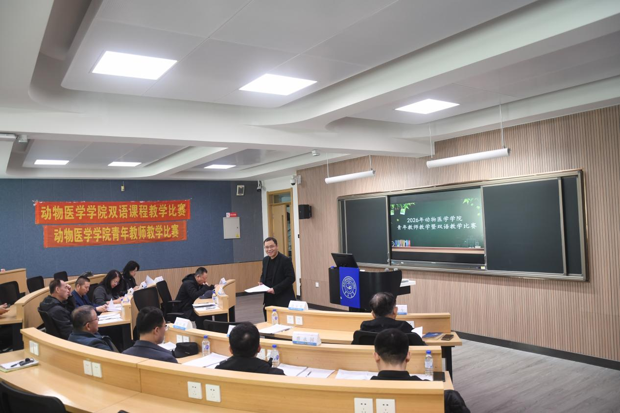 于4月7日成功举办2026年青年教师教学水平大赛暨青年教师双语教学大赛。本次大赛由教学副院长邱家章教授主持,邀请学院党委书记饶家辉教授,校级督导专家张乃生教授、高丰教授,院级督导专家柳增善教授,省级教学名师柳巨雄教授,教学委员会主任胡盼教授,学术委员会主任贺文琦教授,各系主任及学院教学经验丰富的教师共同担任评委。