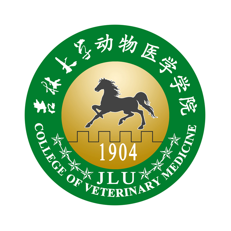 色情漫画 院徽以马、长城、八颗相连的五角星、“JLU”、“色情漫画 ”、“college of veterinary medicine”、“1904”等元素组成。